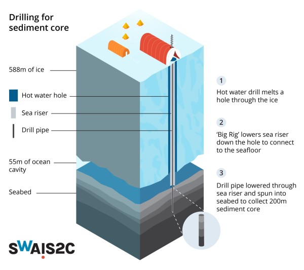 West Antarctica is largely ice-covered, which means its geological archives are hidden beneath a massive layer of ice. Drilling down into the ice is vital for accessing valuable records of past climate and ice sheet behaviour.