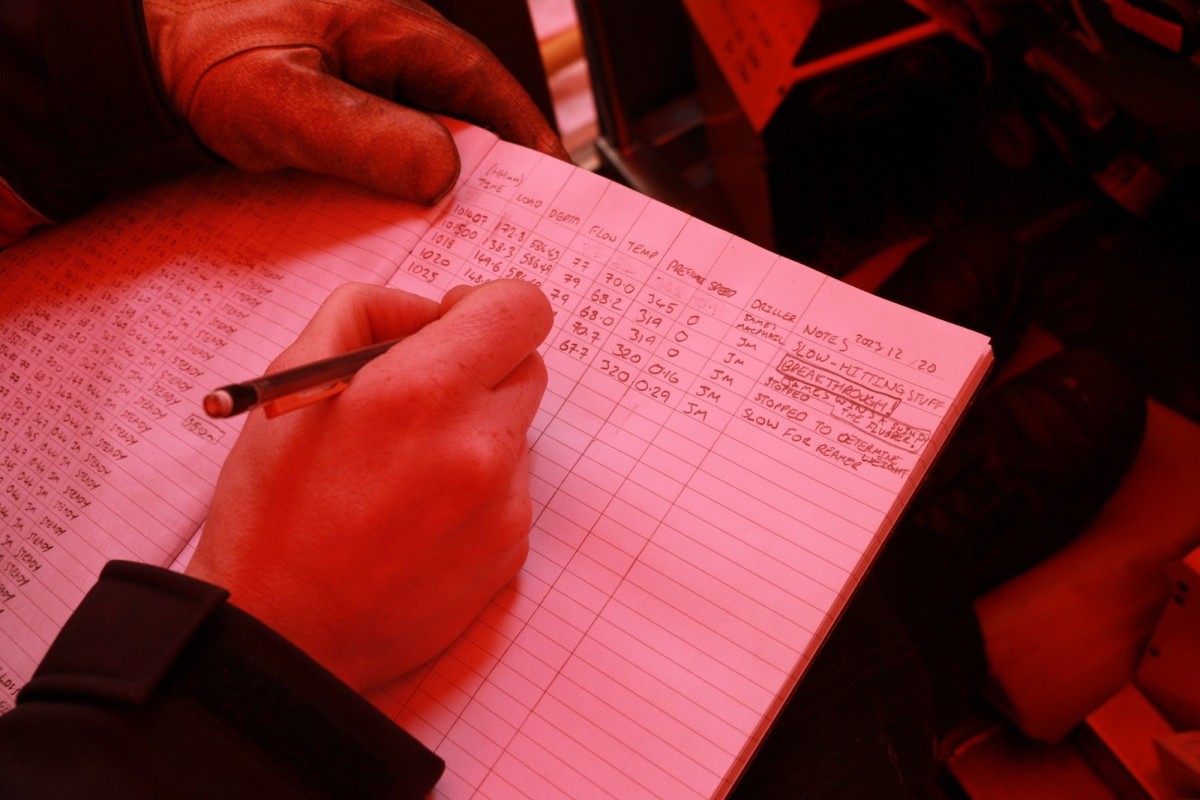 The ledger recording of the breakthrough moment (watch out James - time for a swim in the flubber!)