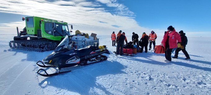 Unpacking after arriving on the Basler Plane at KIS-3 camp