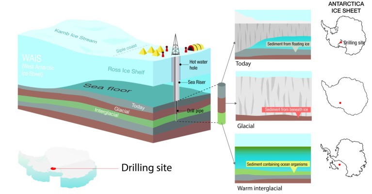West Antarctica is largely ice-covered, which means its geological archives are hidden beneath a massive layer of ice. Drilling down into the ice is vital for accessing valuable records of past climate and ice sheet behaviour.
